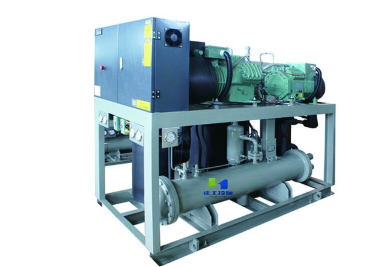 Water-cooled, evaporative-cooled medium-low temperature semi-closed piston chiller unit